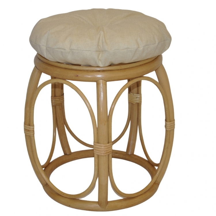 Ratanový nábytek – ratanová taburetka s polstrem. | Průměr taburetky v horní části je 35 cm.