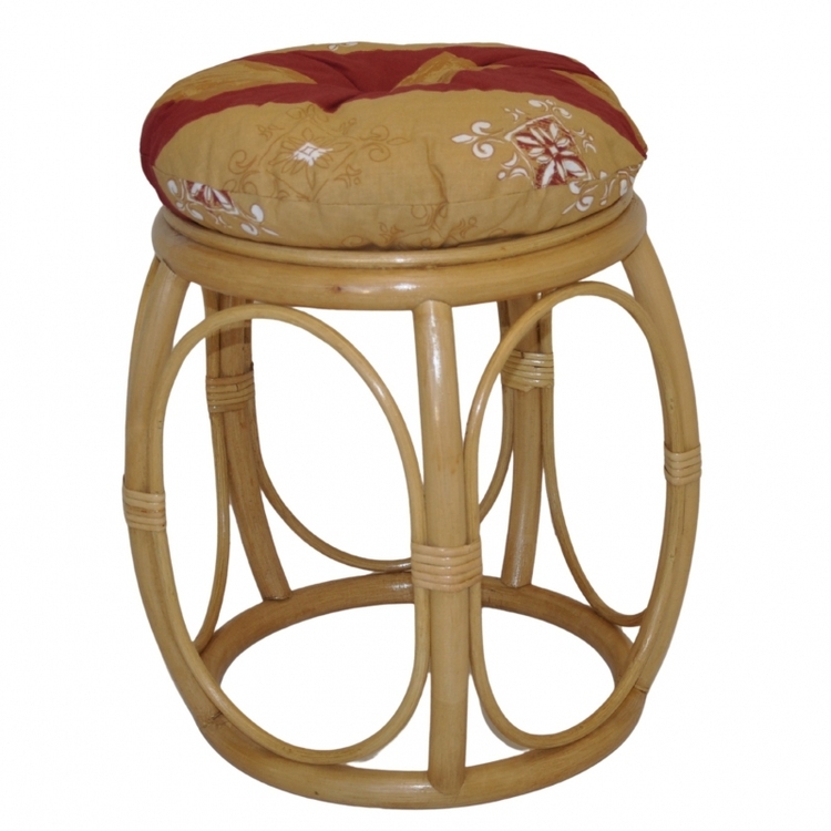 Ratanový nábytek – ratanová taburetka s polstrem | Průměr 35 cm, výška 38 cm.Nosnost taburetky je 110 kg.Barva ratanové konstrukce je medová.Polstr je vyrobený v České republice a je pratelný na 40oC.Materiál polstru je 100% bavlna, výplň polstru je drcený molitan.