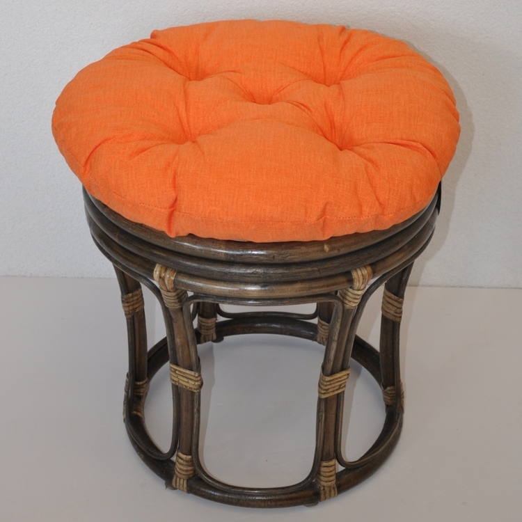 Ratanová taburetka velká hnědá polstr oranžový melír