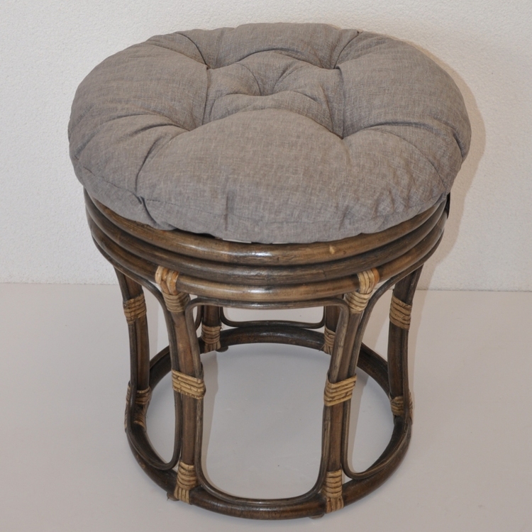 Ratanová taburetka velká hnědá polstr šedý melír