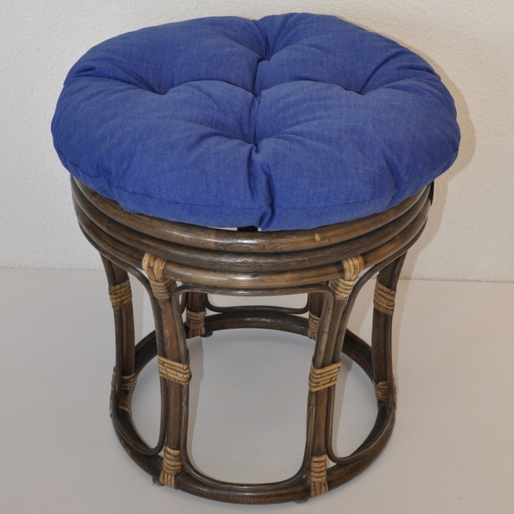 Ratanová taburetka velká hnědá polstr tmavě modrý melír
