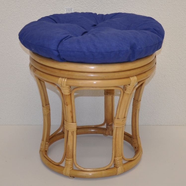 Ratanová taburetka velká medová polstr tmavě modrý melír