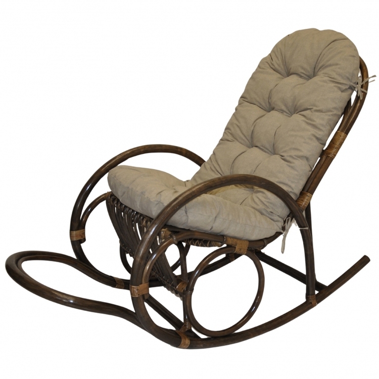 Ratanové houpací křeslo Jenaira hnědé polstr tmavě béžový melír