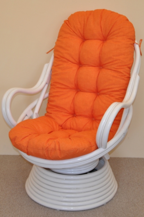 Ratanové houpací křeslo Swivel bílé polstr oranžový melír