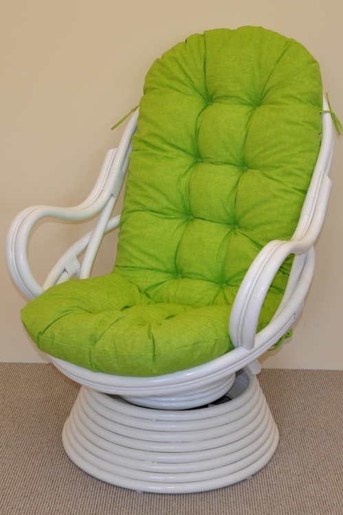 Ratanové houpací křeslo Swivel bílé polstr světle zelený melír