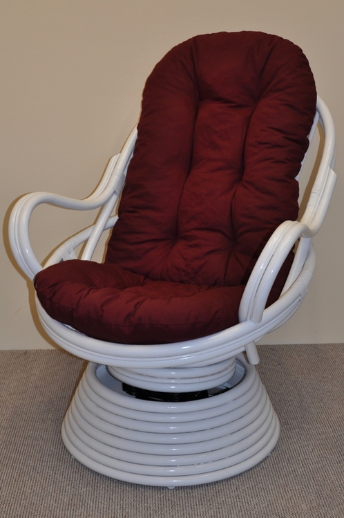 Ratanové houpací křeslo Swivel bílé polstr vínový
