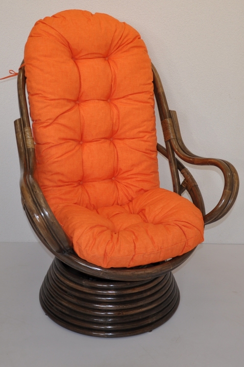 Ratanové houpací křeslo Swivel hnědé polstr oranžový melír