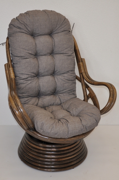 Ratanové houpací křeslo Swivel hnědé polstr šedý melír