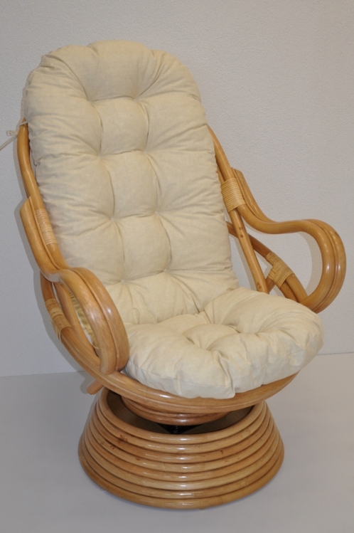 Ratanové houpací křeslo je vyrobeno z přírodního ratanu v barevném provedení konstrukce medové a polstru dle obrázku. | Velikost ratanového křesla je 77×87×100 cm, nosnost 110kg.Kovový díl se čtyřmi pružinami zajišťuje pohodlné houpání a možnost otáčení křesla o 360 stupňů.Barva ratanové konstrukce je medová.Polstr na toto křeslo Swivel je vyroben v České republice. Polstr je vyrobený z kvalitní látky a vyznačuje se vysokou kvalitou zpracování.Polstry pro nás vyrábí firma AXIN Cuschions s.r.o., která zaměstnává výhradně místní vyučené švadleny z České republiky. Tímto způsobem se snažíme podporovat výrobu a zaměstnanost v naší republice.Polstr je vyrobený v ČR a je pratelný na 40oC.
