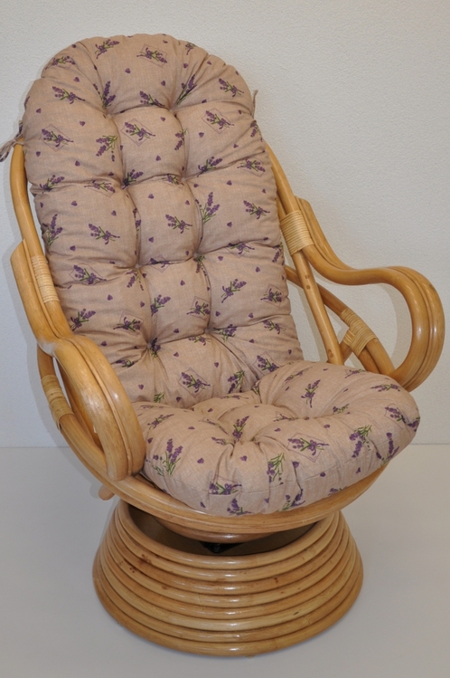 Ratanové houpací křeslo Swivel medové polstr levandule
