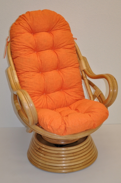 Ratanové houpací křeslo je vyrobeno z přírodního ratanu v barevném provedení konstrukce medové a polstru dle obrázku. | Velikost ratanového křesla je 77×87×100 cm, nosnost 110kg.Kovový díl se čtyřmi pružinami zajišťuje pohodlné houpání a možnost otáčení křesla o 360 stupňů.Barva ratanové konstrukce je medová.Polstr na toto křeslo Swivel je vyroben v České republice. Polstr je vyrobený z kvalitní látky a vyznačuje se vysokou kvalitou zpracování.Polstry pro nás vyrábí firma AXIN Cuschions s.r.o., která zaměstnává výhradně místní vyučené švadleny z České republiky. Tímto způsobem se snažíme podporovat výrobu a zaměstnanost v naší republice.Polstr je vyrobený v ČR a je pratelný na 40oC.