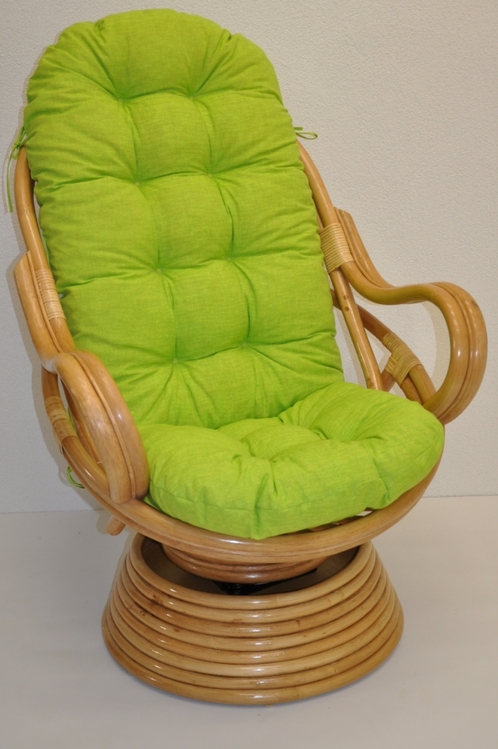 Ratanové houpací křeslo je vyrobeno z přírodního ratanu v barevném provedení konstrukce medové a polstru dle obrázku. | Velikost ratanového křesla je 77×87×100 cm, nosnost 110kg.Kovový díl se čtyřmi pružinami zajišťuje pohodlné houpání a možnost otáčení křesla o 360 stupňů.Barva ratanové konstrukce je medová.Polstr na toto křeslo Swivel je vyroben v České republice. Polstr je vyrobený z kvalitní látky a vyznačuje se vysokou kvalitou zpracování.Polstry pro nás vyrábí firma AXIN Cuschions s.r.o., která zaměstnává výhradně místní vyučené švadleny z České republiky. Tímto způsobem se snažíme podporovat výrobu a zaměstnanost v naší republice.Polstr je vyrobený v ČR a je pratelný na 40oC.