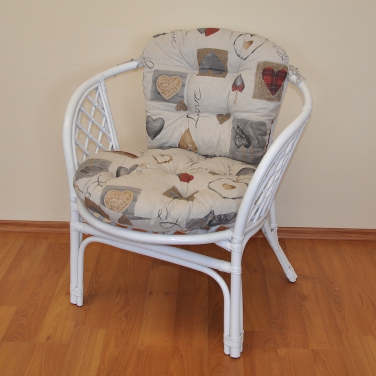 Ratanové křeslo Bahama bílé polstr motiv srdce LOVE