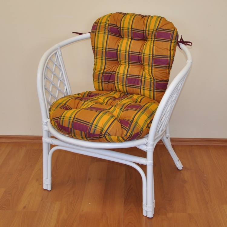 Ratanové křeslo Bahama bílé polstr okrová kostka