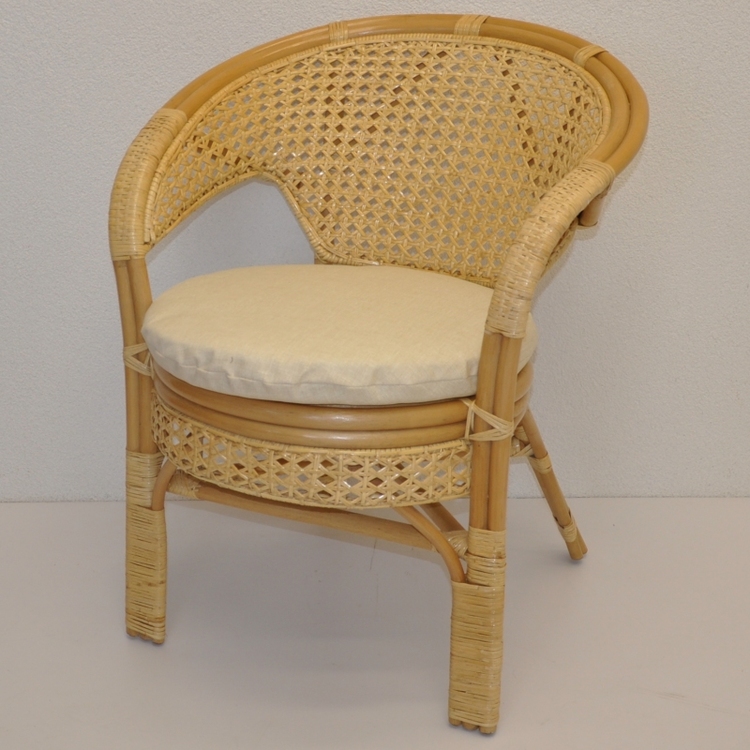 Ratanový nábytek – ratanové křeslo Kina je vyrobeno z přírodního ratanu. Konstrukce křesla je vyrobena z masivních ratanových tyčí.| Velikost křesla je 66×67×78 cm, nosnost křesla 115 kg.Barva ratanové konstrukce i ratanového výpletu je medová.Polstr je vyrobený v České republice.