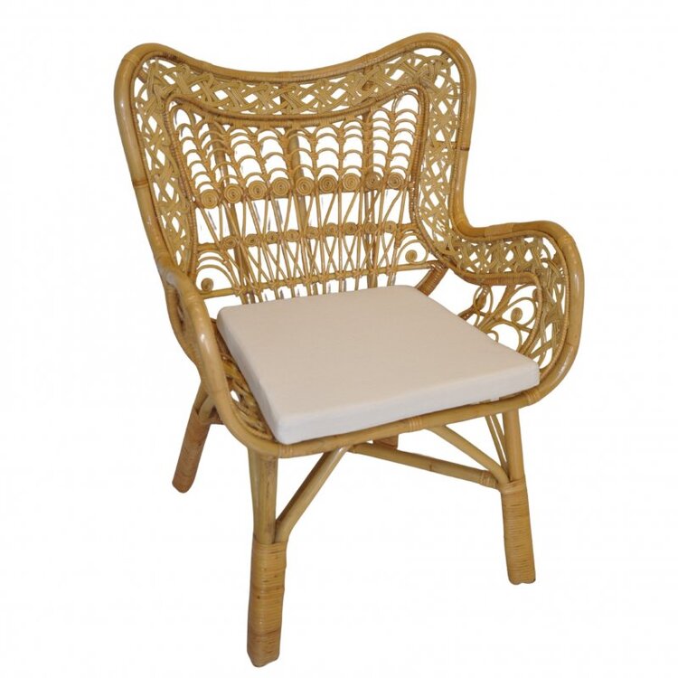 Křeslo vyrobené z přírodního ratanu. | Barva ratanové konstrukce i ratanového výpletu je medová.Velikost křesla je 77×70×103 cm.Výška sedu křesla je 50 cm.