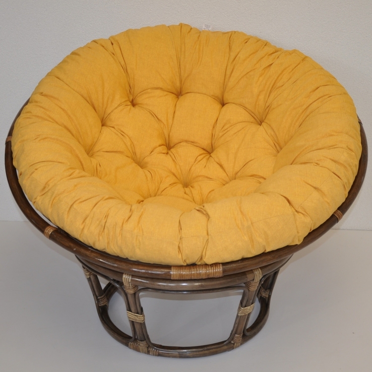 Ratanový papasan 115 cm hnědý - polstr žlutý melír