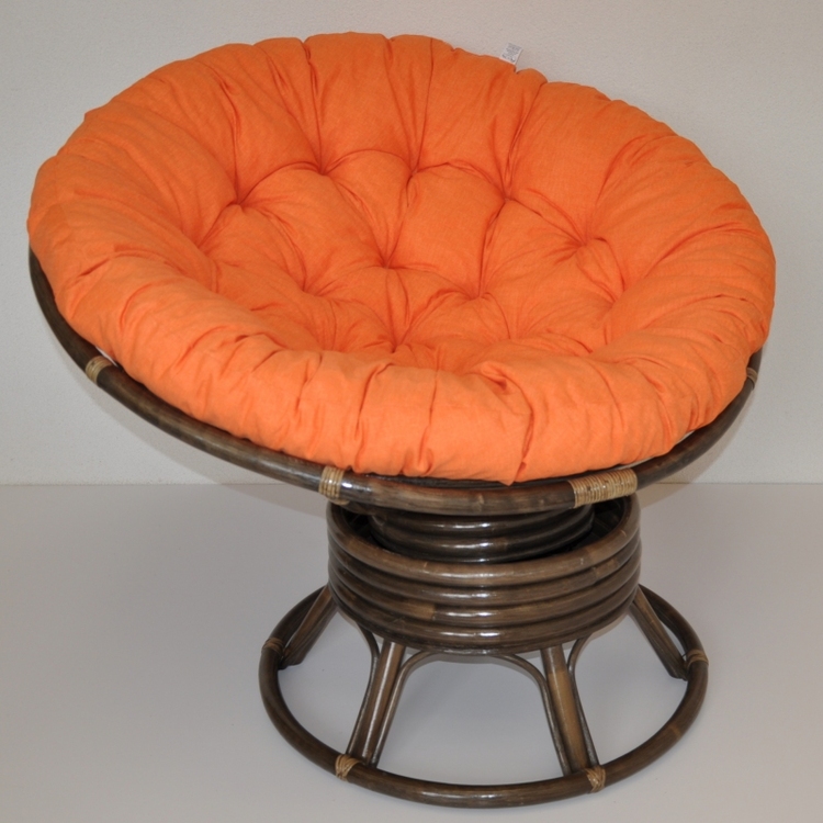 Ratanový papasan houpací hnědý polstr oranžový melír