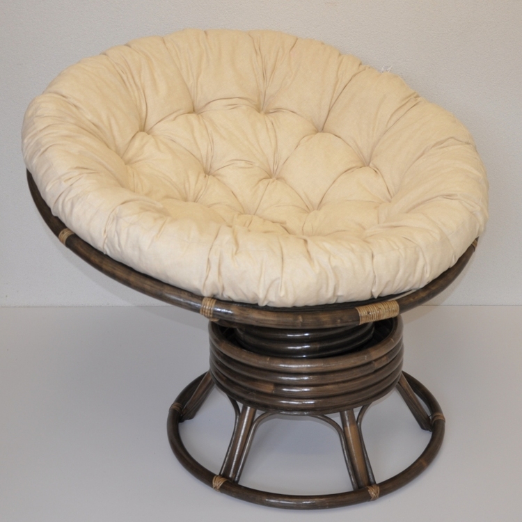 Ratanový papasan houpací hnědý polstr světle béžový melír