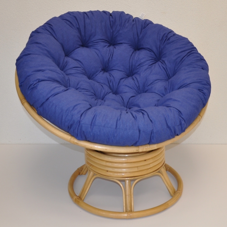 Ratanový papasan houpací medový polstr tmavě modrý melír