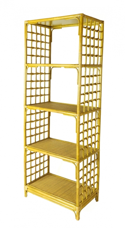 Regál vyrobený z přírodního ratanu.| Barva konstrukce i ratanového výpletu je medová.Velikost ratanové regálu je 68×41×180 cm.