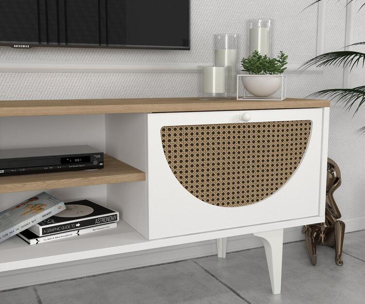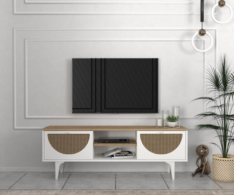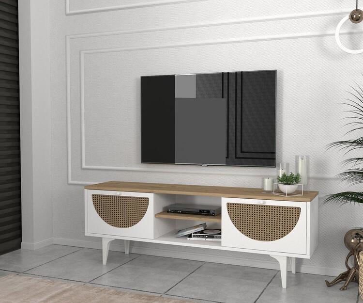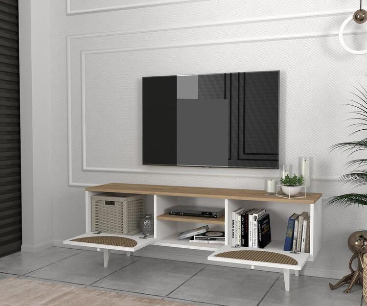 TV stolek je skvělou volbou pro každého, kdo hledá funkční a estetické řešení pro svůj obývací pokoj. Vyrobený z kvalitního LTD materiálu s tloušťkou 18 mm, zajišťuje pevnost a dlouhou životnost. Kombinace bílé a světle hnědé barvy dodává stolku moderní a příjemný vzhled, který se hodí do jakéhokoli interiéru.