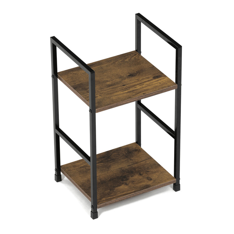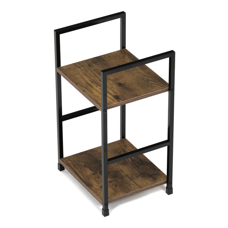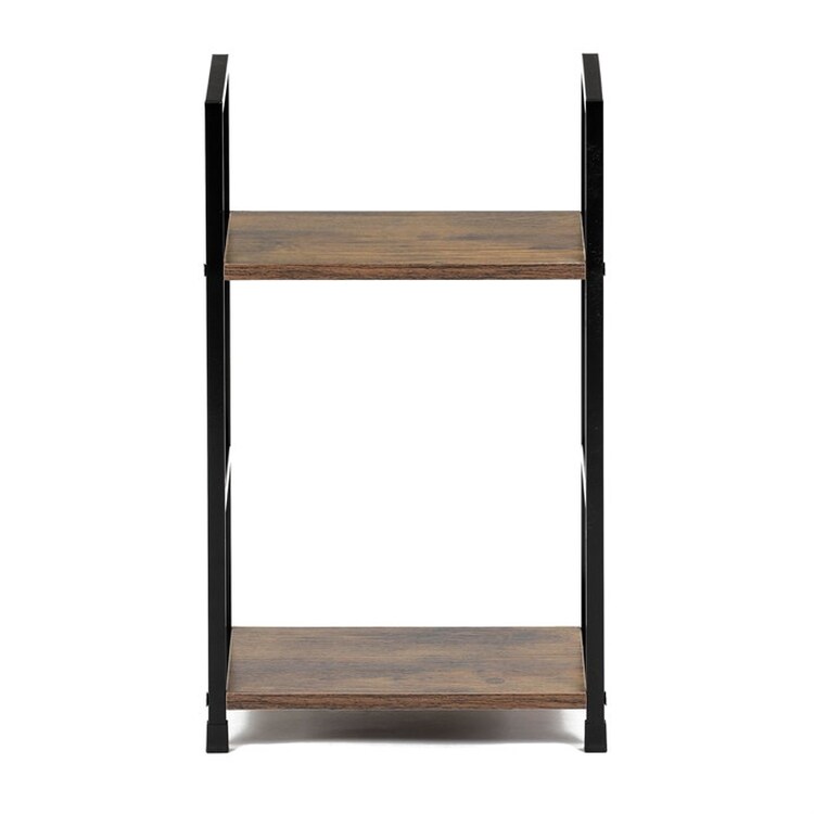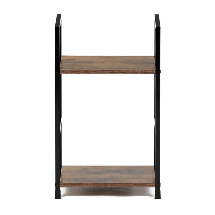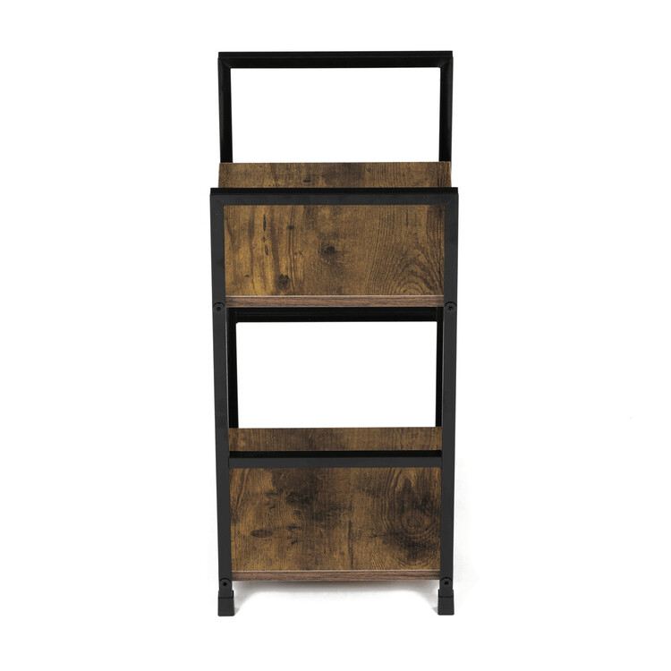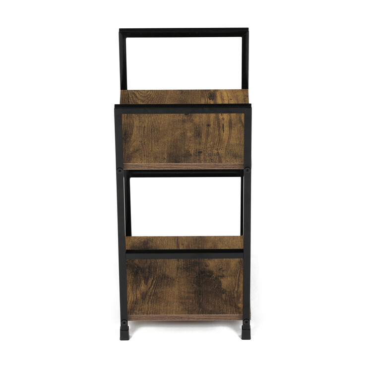 Představujeme vám praktický dvoupatrový regál značky Autronic v industriálním stylu. Tento elegantní kousek v hnědé barvě kombinuje pevný kovový rám s deskami z MDF s dekorem starého dřeva. Jeho kompaktní rozměry umožňují snadné umístění do každého obývacího pokoje, kde poskytne dostatek prostoru pro vaše dekorace, knihy či další drobnosti.