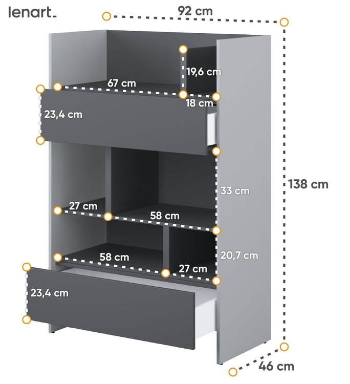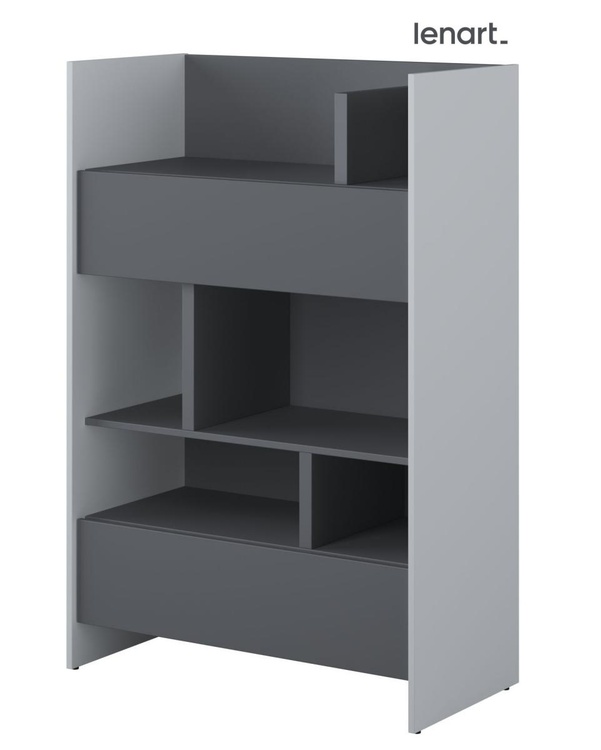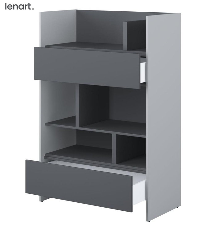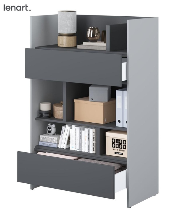 Regál se dvěma zásuvkami šedá/grafit. Rozměry viz obrázek. Nábytek je vyroben z kvalitního lamina s ABS hranou. Lamino je odolné proti poškrábání, poškození, vlhkosti a vysokým teplotám. Dodáváme v demontovaném stavu.CASA 73026