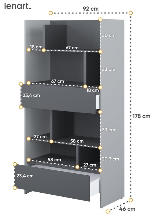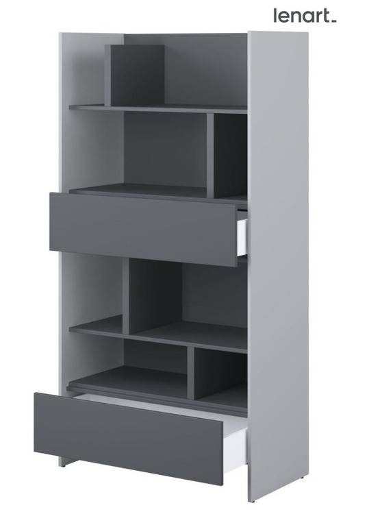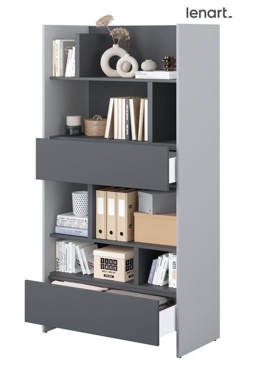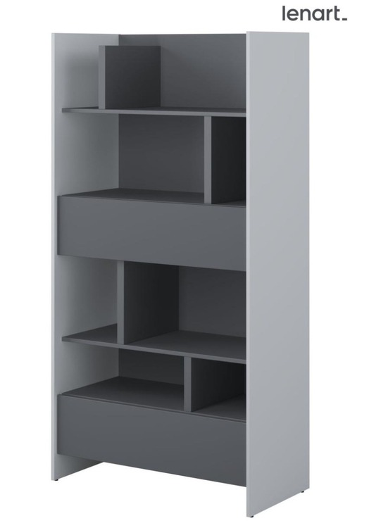Regál se dvěma zásuvkami šedá/grafit. Rozměry viz obrázek. Nábytek je vyroben z kvalitního lamina s ABS hranou. Lamino je odolné proti poškrábání, poškození, vlhkosti a vysokým teplotám. Dodáváme v demontovaném stavu.CASA 73026