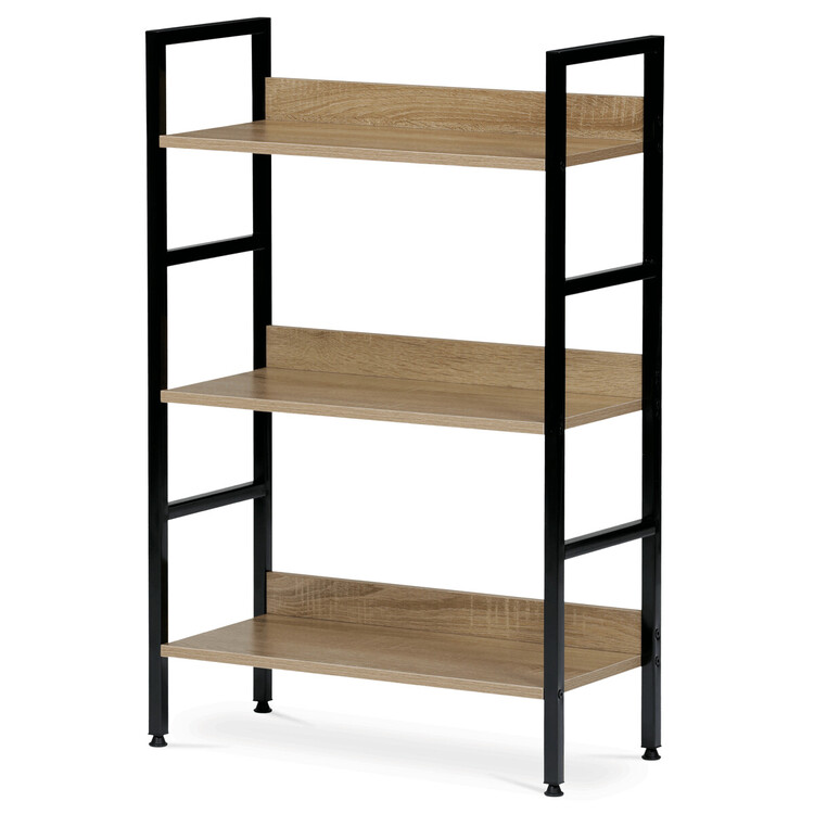 Policový regál má kovovou kostru v práškové černé barvě. Policové díly jsou zhotoven z MDF desky s povrchem 3D folie v odstínu dub sonoma. Zároveň mají na zadní hraně praktické čílko proti zapadnutí vystavených věcí. Pro perfektní rovinu je regál v nožkách zakončen aretační paticí.