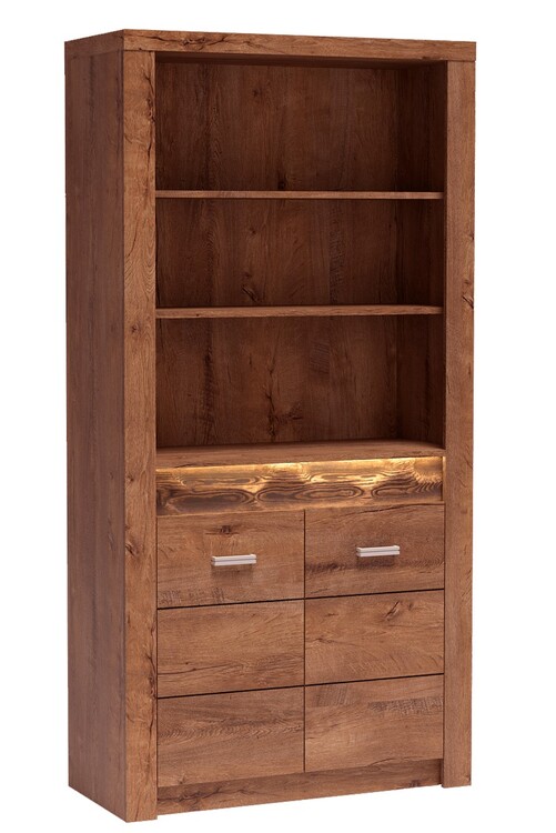 Regál ze sektorové řady. Za dvířky je 1 police. Systém je exkluzivní kolekce navržena v moderním duchu. Vsazením LED osvětlení do ozdobné rýhované lišty, které najdete v naší další nabídce k dokoupení, je zvýrazněn rustikální vzhled masivního dřeva. Celá řada se vyznačuje elegancí a... více informací o zboží