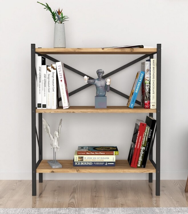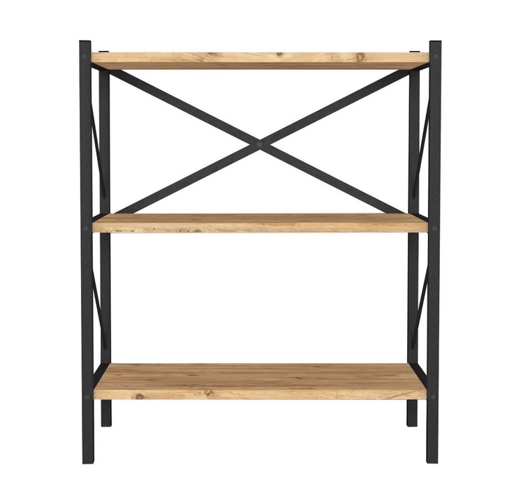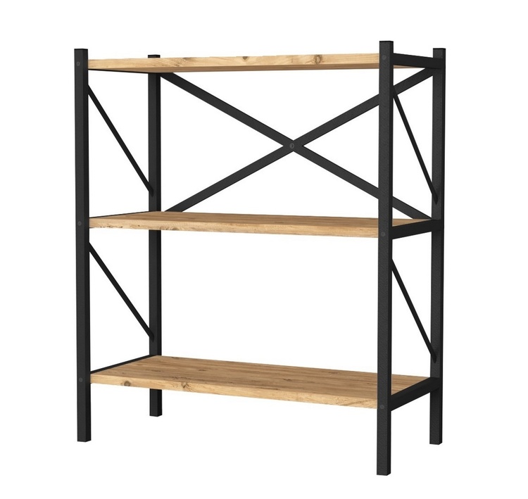 Regál se třemi policemi je z kovového rámu v matné černé barvě a police jsou vyrobeny z kvalitní LTD desky v barvě borovice. Dodáváme v demontovaném stavu.CASA 36006