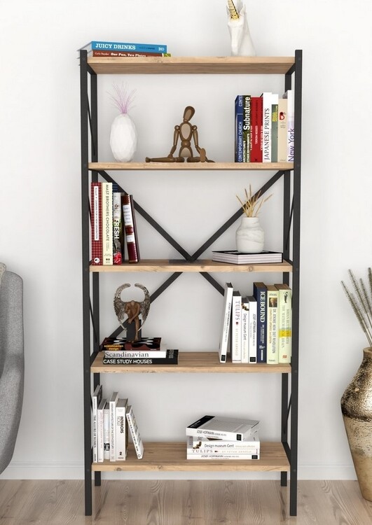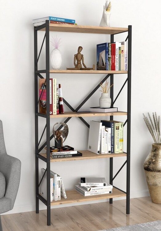 Regál s pěti policemi je z kovového rámu v matné černé barvě a police jsou vyrobeny z kvalitní LTD desky v barvě borovice. Dodáváme v demontovaném stavu.CASA 36006