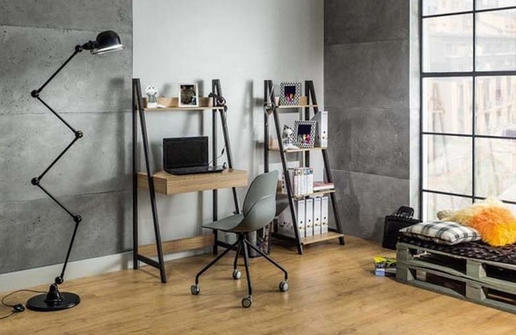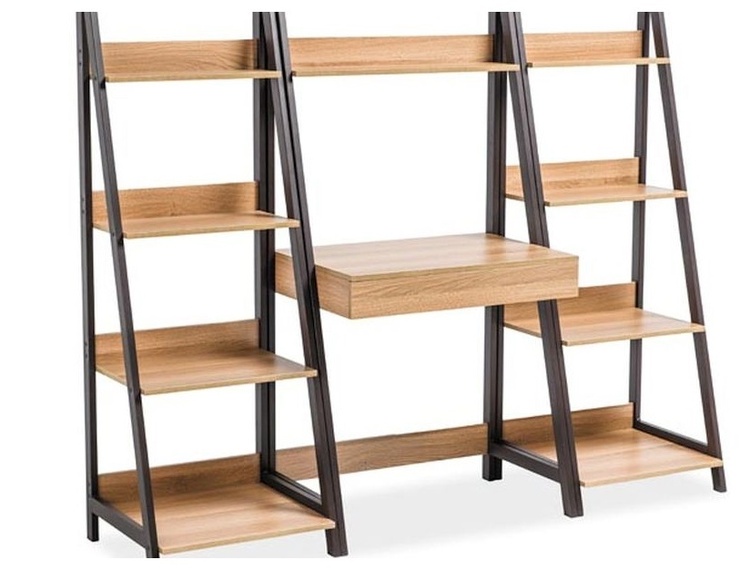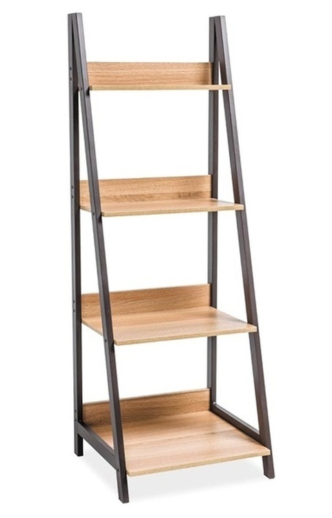 Jednoduchý ale praktický regál se čtyřmi poličkami. Zajímavá konstrukce nožek ve tvaru žebříku. Konstrukce je kovová tmavě hnědé barvy, deska z kvalitního MDF v barvě dub. Vhodný i pro menší pokoje. Možno kombinovat s Matis B.CASA 11496