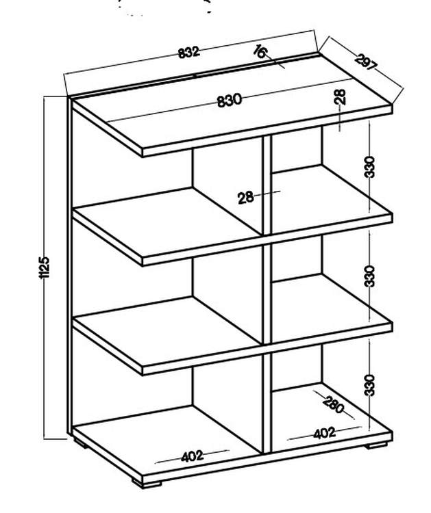 Praktický policový regál je vyroben z kvalitní laminátové desky (28 mm) s PVC hranami v barvě světle šedá. Výška prostoru mezi policemi je 33 cm, hloubka polic je 28 cm. Dodáváme v demontovaném stavu.CASA 87021