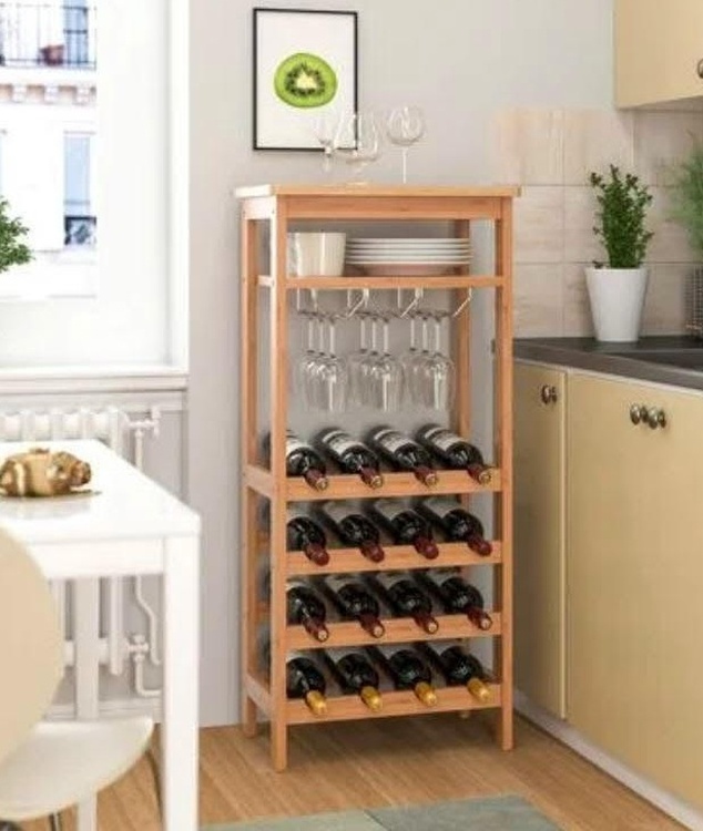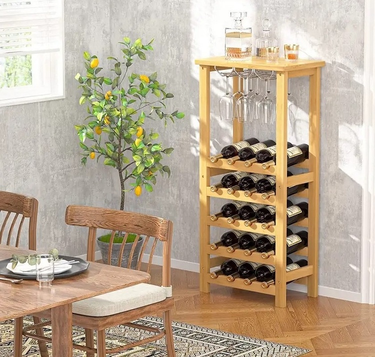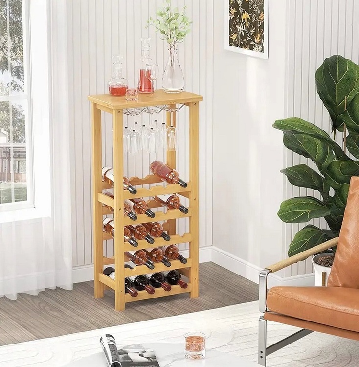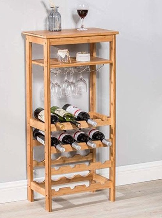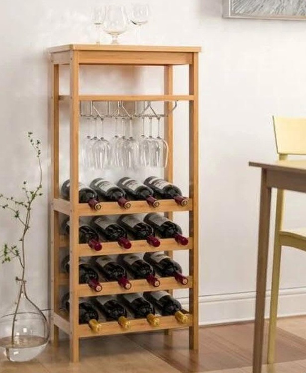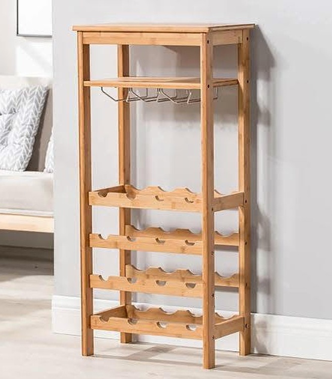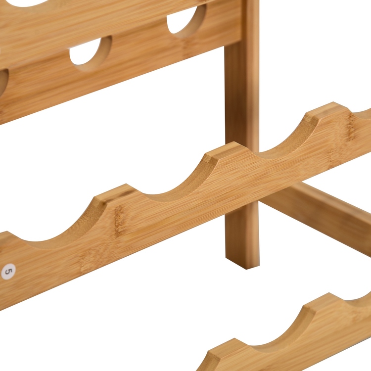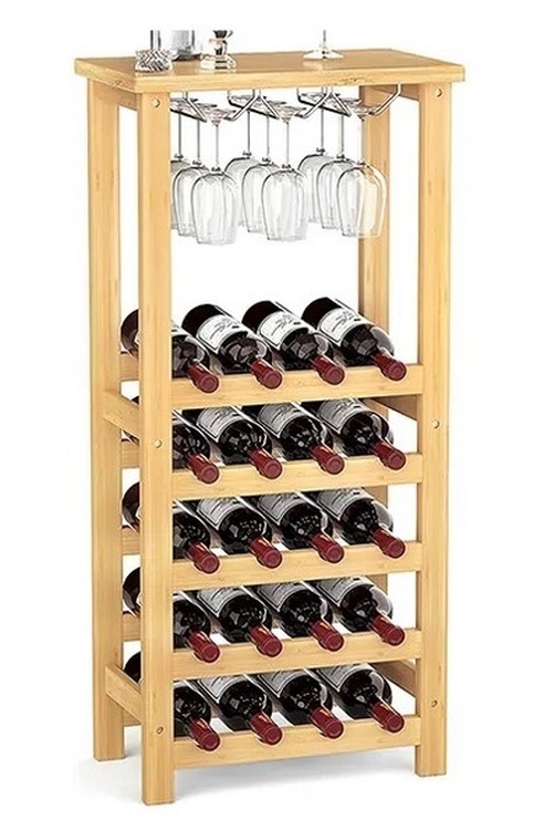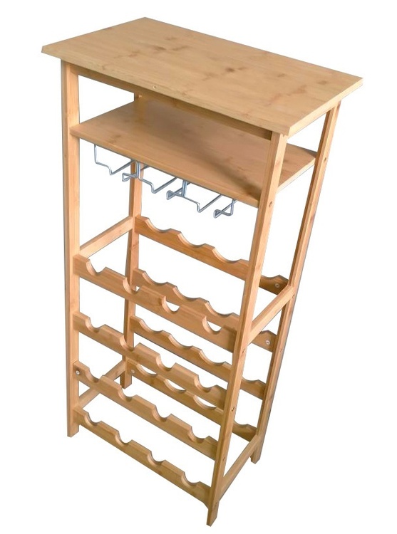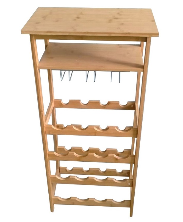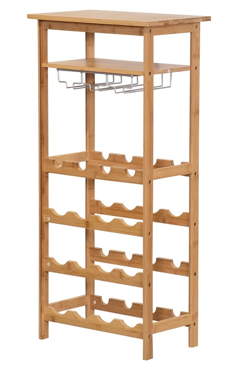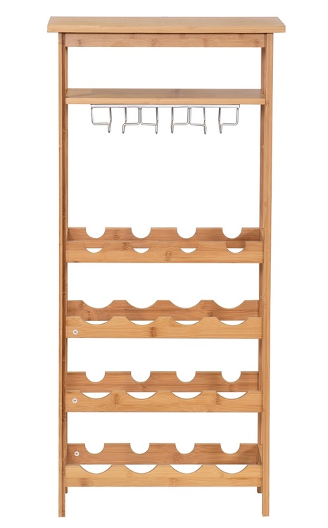 Regál na víno je vyroben z přírodního bambusu. Do regálu je možné umístit 16 lahví vína a taktéž je součástí regálu závěsný systém na sklenice. Dodáváme v demontovaném stavu.CASA 95205