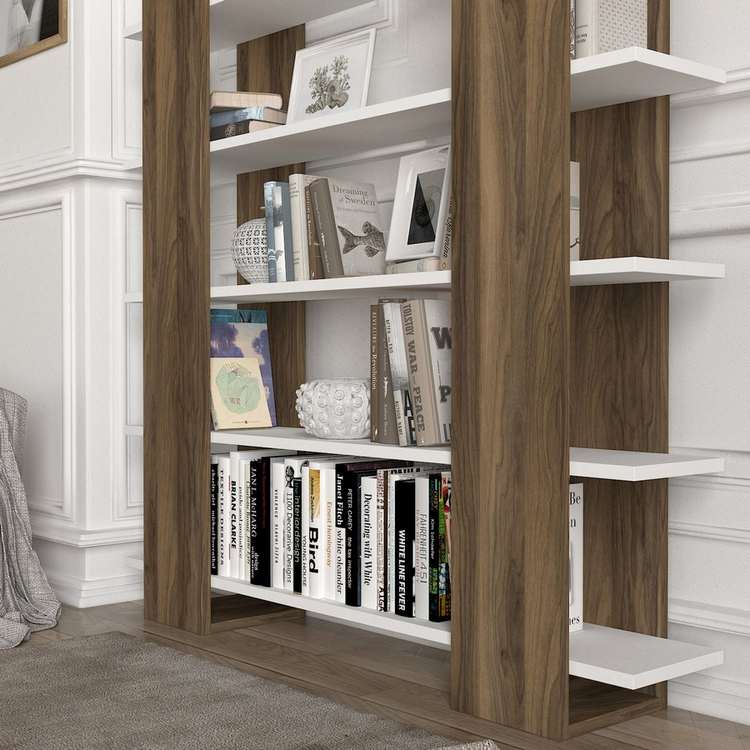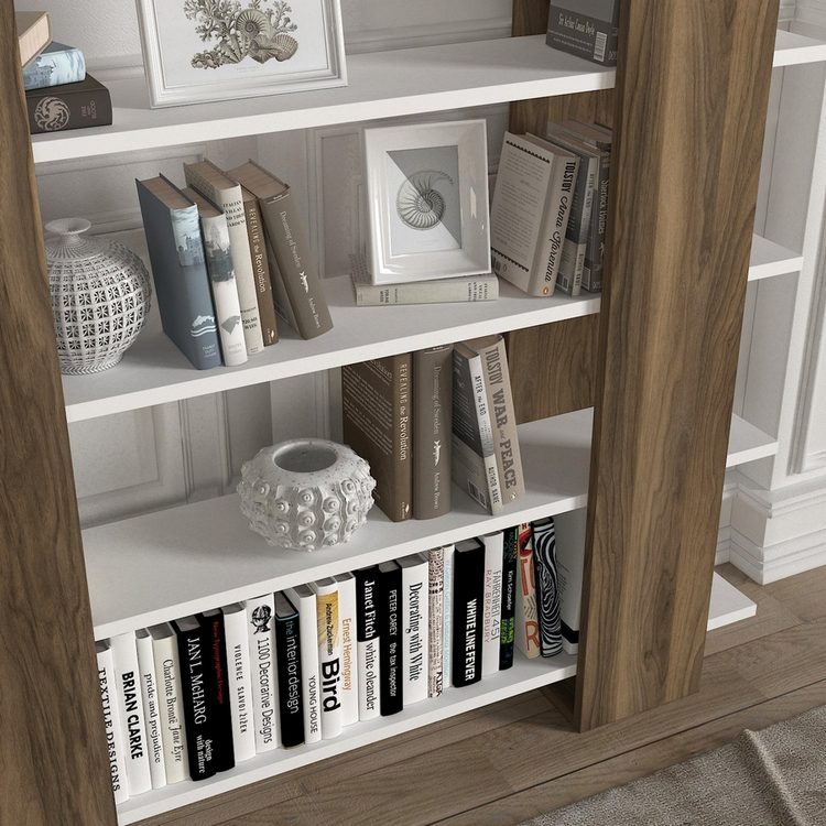 Regál je vyroben z kvalitního lamina o tl.18 mm hraněné PVC páskou, odolného proti poškrábání v kombinaci barev matná bílá/vlašský ořech. Dodáváme v demontovaném stavu.CASA 28058