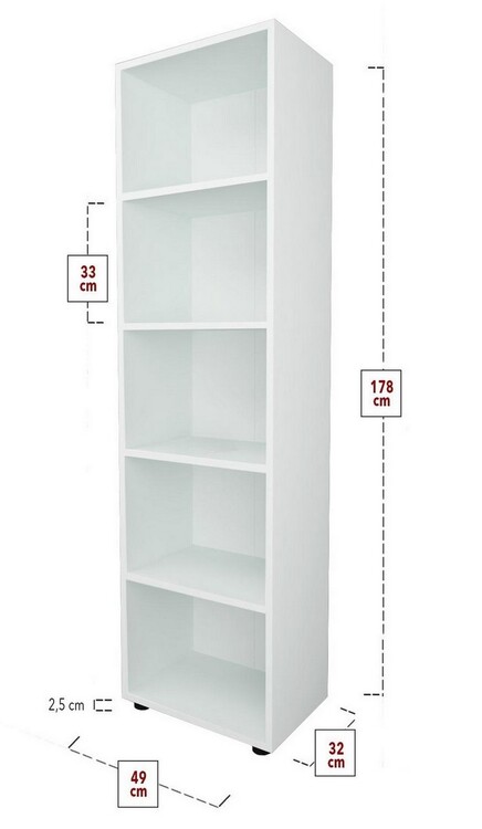 Vysoký regál s policemi v moderním stylu je vyroben z kvalitní desky LTD nenáročné na údržbu, v barevném provedení bílá. Tloušťka materiálu – 18 mm. Dodáváme v demontovaném stavu.CASA 36044