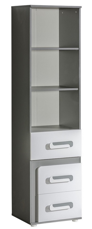 Regál APETTITA ze sektorové řady, která se vyznačuje netradičním zpracováním barev a originalitou úchytů. Tento styl nábytku zaujme každou mladší generaci. Nábytek je vyroben z kvalitní LTD desky hraněné ABS lištou. Korpus je v barvě šedá antracit, čela zásuvek jsou bílé matné. Úchytky jsou v barevné kombinaci antracit/bílá. Sektorový nábytek APETTITA má široký výběr prvků, který Vám zaručí sestavit si dětský nebo studentský pokoj, ložnici či kancelář podle svých potřeb, přání a představ. Dodáváme v demontovaném stavu.CASA 23001