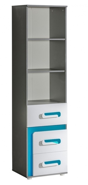 Regál APETTITA ze sektorové řady, která se vyznačuje netradičním zpracováním barev a originalitou úchytů. Tento styl nábytku zaujme každou mladší generaci. Nábytek je vyroben z kvalitní LTD desky hraněné ABS lištou. Korpus je v barvě šedá antracit, čela zásuvek jsou bílé matné, doplňková barva je tyrkys. Úchytky jsou v barevné kombinaci tyrkys/bílá. Sektorový nábytek APETTITA má široký výběr prvků, který Vám zaručí sestavit si dětský nebo studentský pokoj, ložnici či kancelář podle svých potřeb, přání a představ. Dodáváme v demontovaném stavu.CASA 23001