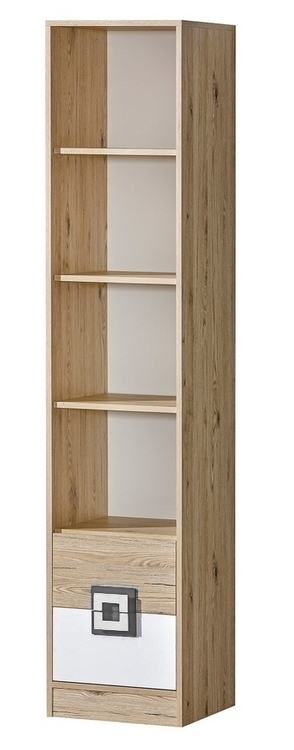 Regál NIKO ze sektorové řady, která se vyznačuje netradičním zpracováním barev a originalitou úchytů. Tento styl nábytku zaujme každou mladší generaci. Skříň je vyrobena z kvalitní LTD desky hraněné ABS lištou. Korpus je v barvě dub jasný, čela zásuvek v barvě dub jasný / bílá mat. Úchytky jsou v barevné kombinaci popel / bílá. Skříň má tři police a 2 zásuvkami ve spodní části. Sektorový nábytek NIKO má široký výběr prvků, který Vám zaručí sestavit si dětský nebo studentský pokoj, ložnici či kancelář podle svých potřeb, přání a představ. Dodáváme v demontovaném stavu.CASA 23004