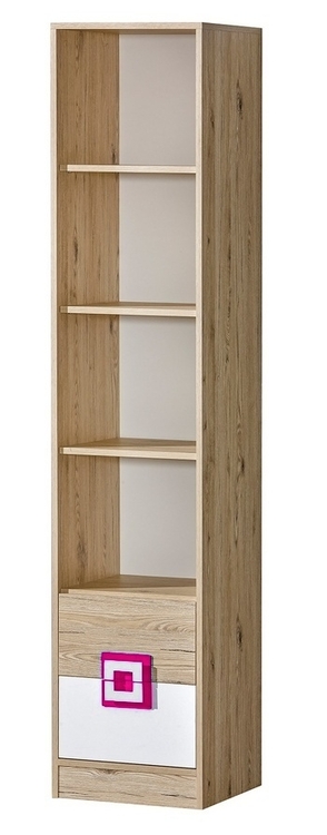 Regál NIKO ze sektorové řady, která se vyznačuje netradičním zpracováním barev a originalitou úchytů. Tento styl nábytku zaujme každou mladší generaci. Skříň je vyrobena z kvalitní LTD desky hraněné ABS lištou. Korpus je v barvě dub jasný, čela zásuvek v barvě dub jasný / bílá mat. Úchytky jsou v barevné kombinaci růžová / bílá. Skříň má tři police a 2 zásuvkami ve spodní části. Sektorový nábytek NIKO má široký výběr prvků, který Vám zaručí sestavit si dětský nebo studentský pokoj, ložnici či kancelář podle svých potřeb, přání a představ. Dodáváme v demontovaném stavu.CASA 23004