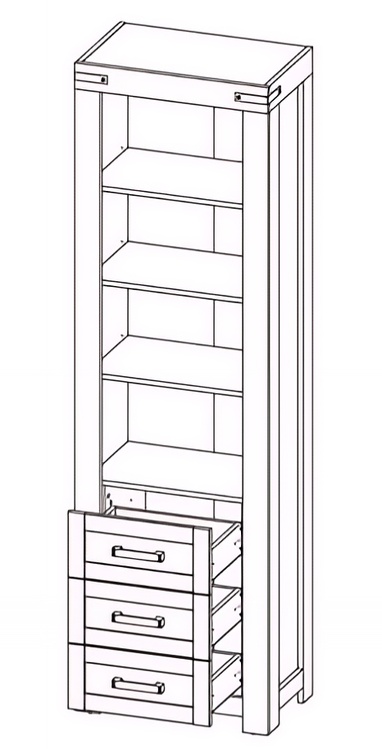 Regál se třemi zásuvkami.