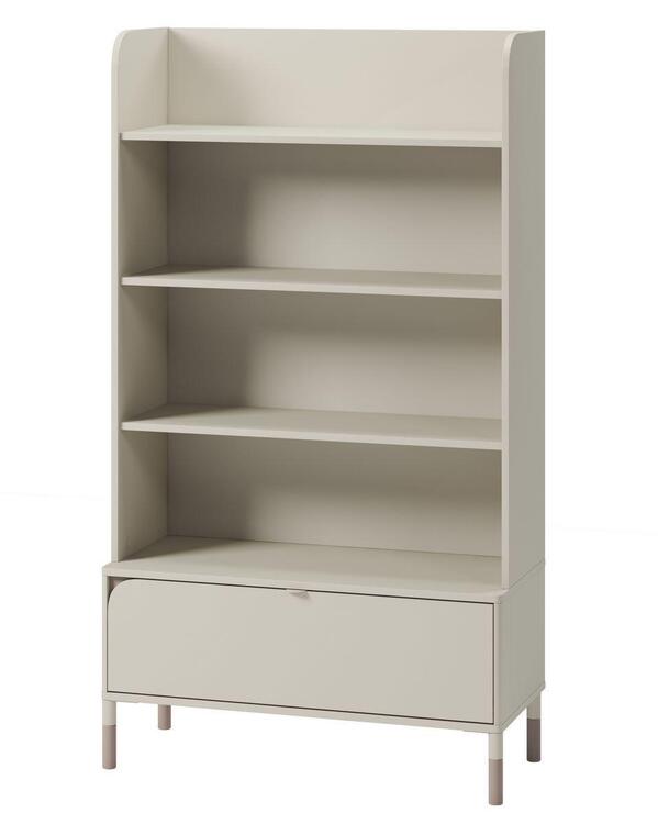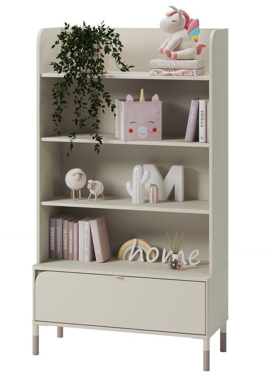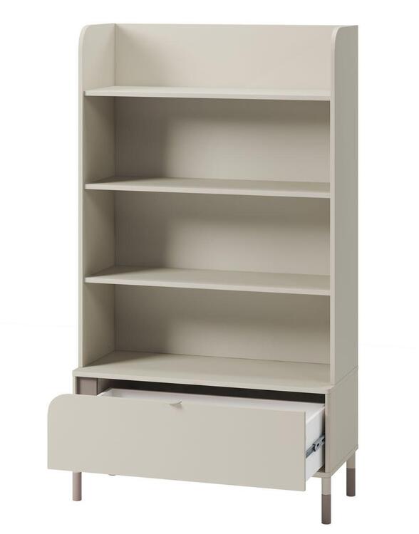 Regál s praktickou hlubokou zásuvkou. Nábytek pro teenagery, který díky něžnosti hlavně ocení divky, nabízí moderní a praktické řešení do pokojů. Kombinace kašmírové a lanýžové barvy vytváří elegantní a univerzální design. Vyniká zaoblenými čely, asymetrickým stylem a štíhlými nožkami, které dodávají lehký vzhled. Vyroben je z odolné laminované desky o tloušťce 16 mm, zadní stěna je z HDF desky o tloušťce 3 mm. Jemné úchyty jsou kuličkové vyrobené z plastu. Ideální volba pro stylový a funkční prostor. Dodáváme v demontovaném stavu.