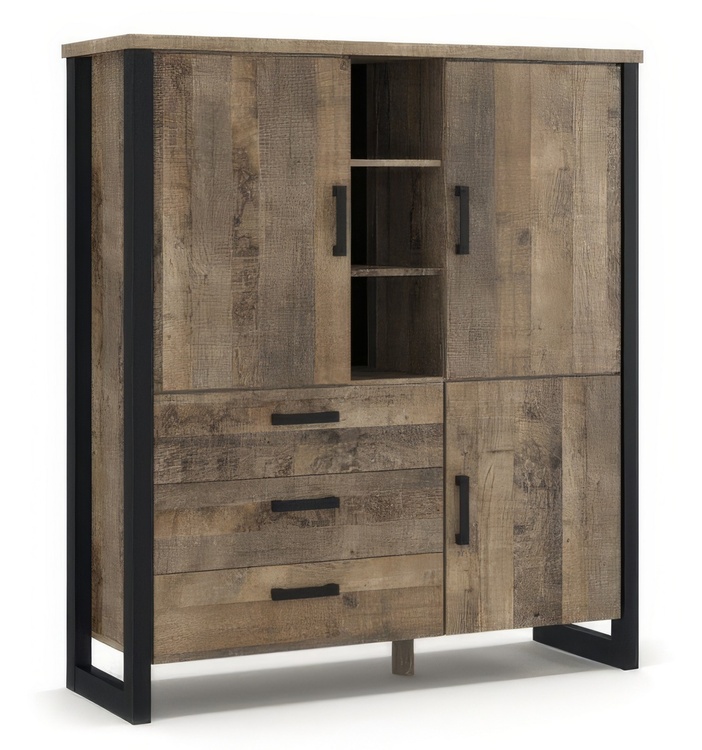 Široký regál se 3 dvířky a 3 zásuvkami v industriálním stylu je vyroben z LTD desky v barevném provedení dub grange. Stabilní konstrukce s nožkama je z desky MDF černé barvy. Úchyty jsou také černé. Nabídka komponentů této sektorové řady umožňuje sestavit si nábytek dle vlastních představ.... více informací o zboží