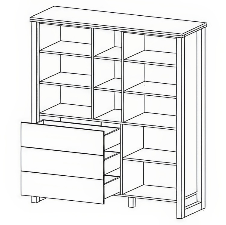 Široký regál se 3 dvířky a 3 zásuvkami v industriálním stylu je vyroben z LTD desky v barevném provedení dub grange. Stabilní konstrukce s nožkama je z desky MDF černé barvy. Úchyty jsou také černé. Nabídka komponentů této sektorové řady umožňuje sestavit si nábytek dle vlastních představ. Dodáváme v demontovaném stavu.CASA 97061