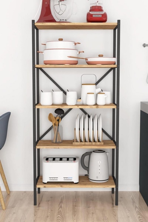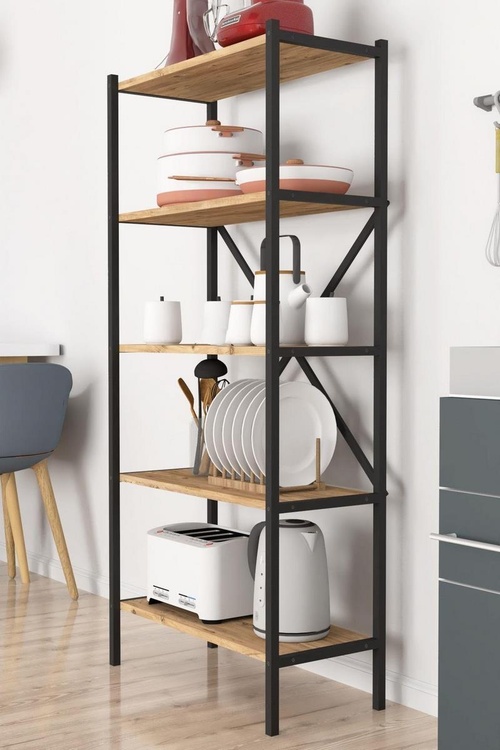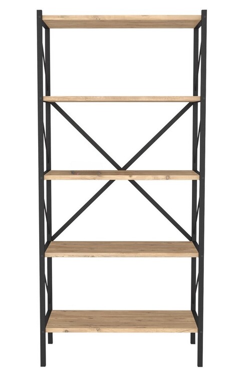 Regál s pěti policemi je z kovového rámu v matné černé barvě a police jsou vyrobeny z kvalitní LTD desky v barvě borovice. Dodáváme v demontovaném stavu.CASA 36015