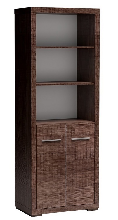 Regál VEGAS kombinuje otevřený úložný prostor se dvěma policemi v horní části a uzavřenou skříňkou se dvěma dvířky a jednou policí dole. Vyniká moderním designem a masivním vzhledem.