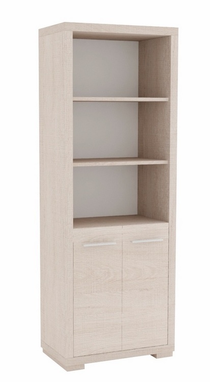 Regál VEGAS kombinuje otevřený úložný prostor se dvěma policemi v horní části a uzavřenou skříňkou se dvěma dvířky a jednou policí dole. Vyniká moderním designem a masivním vzhledem.