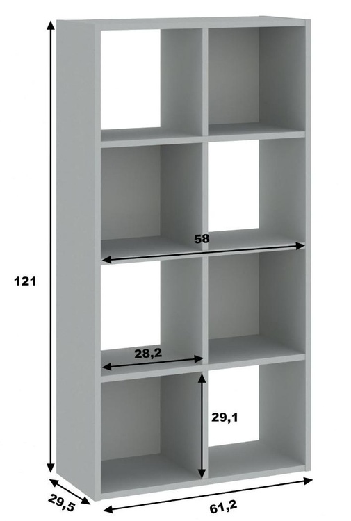 Vysoký regál s osmi přihrádkami je vyroben z kvalitní LTD desky nenáročné na údržbu, v barevném provedení šedá. Dodáváme v demontovaném stavu.CASA 85028